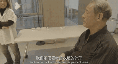 “我相信我们仍旧有希望”,纪录片除了大篇幅记录了三宅一生的设计和工作状态时,也从团队们的视角刻画了这位设计师的严谨态度。在纪录片的后半段,掌镜者将镜头留给了团队里的两个年轻人:板仓和盐谷。擅长折叠设计且拥有工程学背景的板仓,他的“五层宝塔”——以管状褶皱的设计获得了三宅的高度评价,“这非常的有趣,是一种新的形势。”三宅评价道。